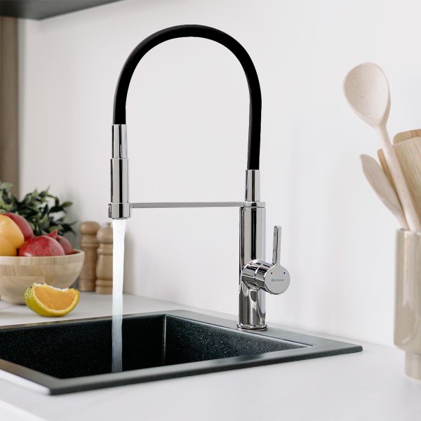 Torneira Monocomando com Bica Flexível Galla Preto Cromado - Brava